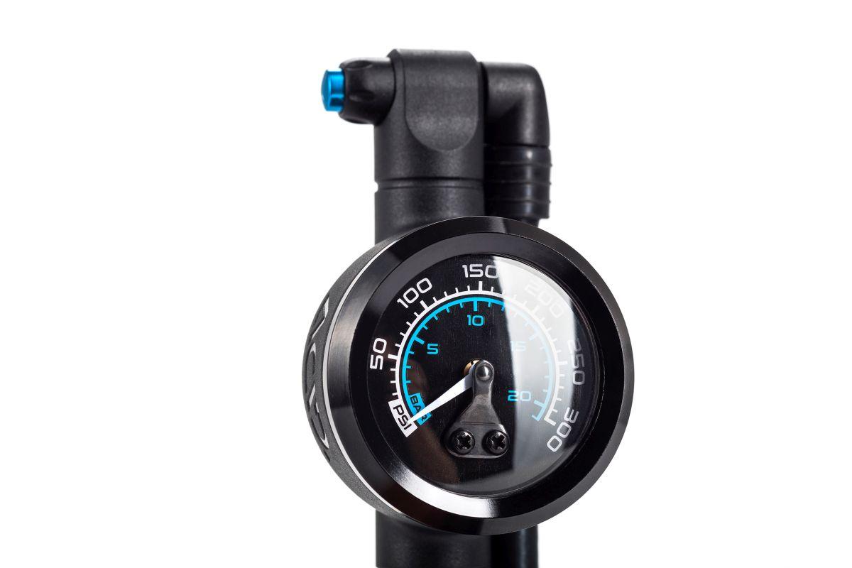 Dämpferpumpe mit 2-stufigem Schrader-Ventilkopf für sicheres Abschrauben ohne Luftverlust. Dank NF Ergonomics Griff liegt die Pumpe perfekt in der Hand und ermöglicht mit dem Präzisionsmanometer und Luftablass-Ventil eine perfekte Fahrwerkseinstellung.
