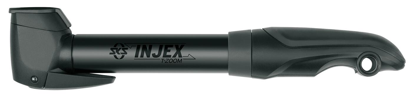 Und es hat Zoom gemacht! Die SKS Alu-Kompaktpumpe INJEX T-ZOOM mit universellem MULTI VALVE-Ventilanschluss für alle Ventilarten überzeugt durch die integrierte Teleskop-Funktion. Die Pumpe ist mit einem ergonomischen 2-Komponenten Klapp-T-Griff ausgestattet und liegt gut in der Hand. Weitere Features sind die zuschaltbare Hochdruckstufe bis zu 10 bar und der Klemmhebel für eine sichere Ventilverbindung. Dank des 2 Punkt-Pumpenhalters, der im Lieferumfang enthalten ist, kann die Fahrradpumpe unter oder anstelle eines Flaschenhalters befestigt werden.