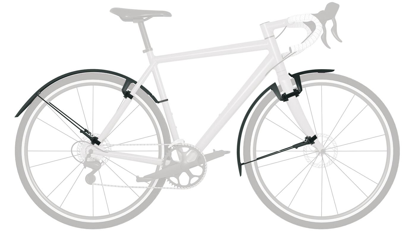 Ready to rock the Gravel! Das SKS Schutzblech SPEEDROCKER aus schlagfestem Hochleistungskunststoff wurde speziell für Gravelbikes, Cyclocrosser und Rennräder mit Disk Brakes entwickelt. Ein besonderes Feature ist die Doppelspoiler-Funktion am Vorderradschutz, der mit gummierten Klett-Straps befestigt wird. Der Hinterradschutz garantiert durch sein ausziehbares Verlängerungsprofil ebenfalls einen perfekten Spritzschutz und wird mit stabilen Gummistraps fixiert. Das Halterungssystem mit flexiblen Flaps lässt sich für jede Geometrie am Rahmen befestigen. Integrierte Unterlaufstreben mit ESC Vario-Sicherheitssystem sorgen zudem nicht nur für einen cleanen Look, sondern auch für mehr Freiraum zwischen Radschutz und Reifen.
