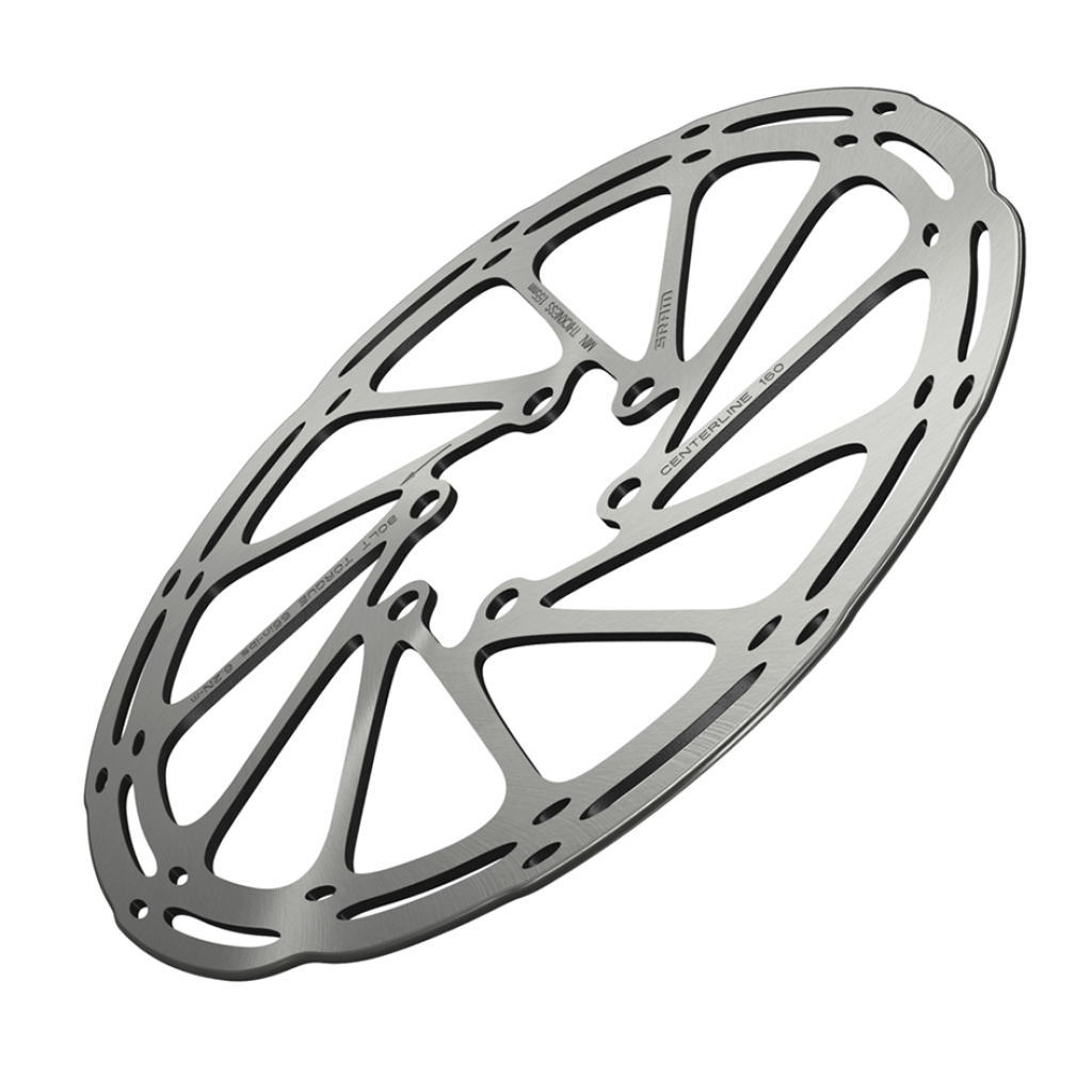 Die CenterLine-Bremsscheiben bieten eine glatte, gleichmässige und leise laufende Bremsfläche. Abgerundete Kanten machen den Rad-Einbau leichter und entsprechen den UCI-Regularien.