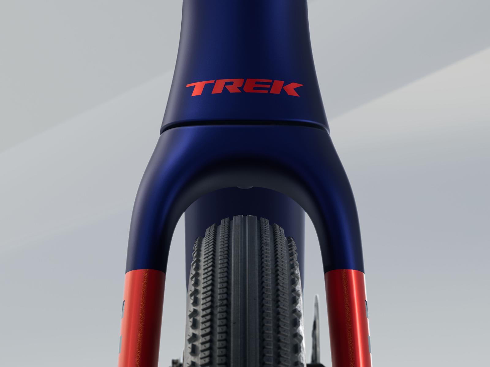 Einen leichten und aerodynamischen Rahmen aus 800 Series OCLV Carbon mit IsoSpeed-Komforttechnologie und vielen Befestigungspunkten für die wichtigsten Utensilien des Renntages. Bontrager Aeolus Pro 3V Carbonlaufräder und eine Trek Aero RSL Lenker-Vorbau-Einheit aus Carbon für ein leichtgewichtiges und agiles Fahrverhalten. Außerdem SRAMs Force XPLR AXS D2 Antrieb mit kabelloser Schaltung für ruppige Straßen.