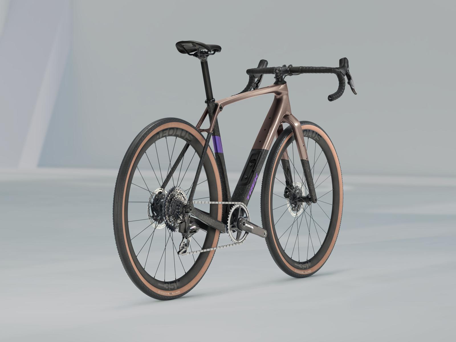 Einen Rahmen aus 500 Series OCLV Carbon samt Carbongabel, Staufach im Unterrohr und Platz für Reifen bis 50 mm (wie gemessen) sowie Befestigungsmöglichkeiten an Rahmen und Gabel. Eine komplett drahtlose SRAM Force XPLR AXS 1x12-Schaltung, hydraulische Scheibenbremsen, eine Carbonsattelstütze und Bontrager Aeolus Elite 35V Tubeless-Ready-Laufräder mit 42 mm breiten Reifen.