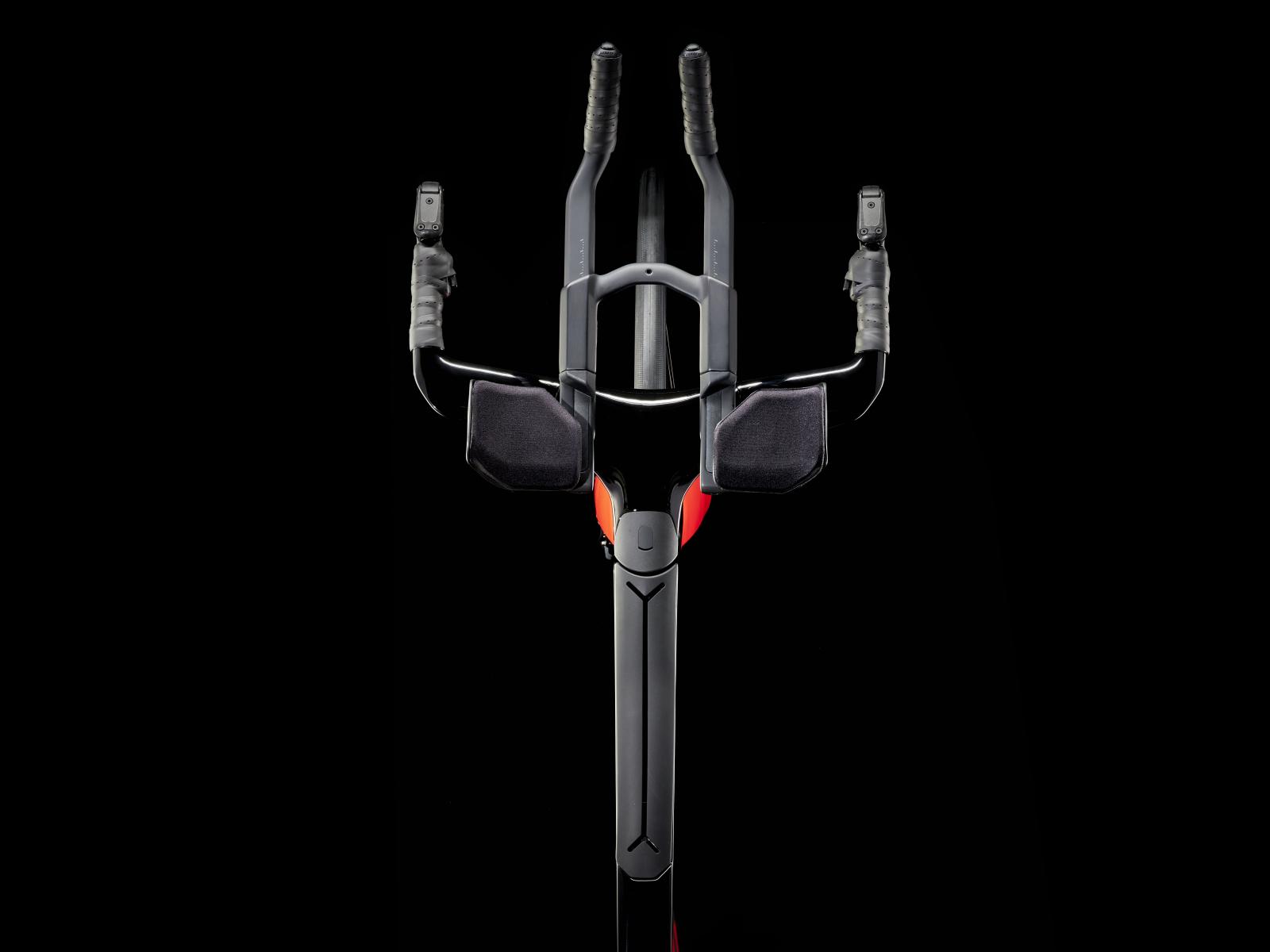 Einen ultraleichten Rahmen aus 800 Series OCLV Carbon, windschnittige Rohre mit Kammtail Virtual Foil-Profil (KVF), eine Speed Concept-Carbongabel mit aerodynamischem Profil, vibrationsdämpfendes IsoSpeed, integrierte Aufbewahrungslösungen für Verpflegung, Flüssigkeit und Pannenkit, einen drahtlosen, elektronischen SRAM Force AXS D2 12fach-Antrieb mit SRAM AXS Clics-Schalthebeln, einen SRAM Force AXS-Powermeter, einen vollständig integrierten Lenker samt Vorbau, einen triathlonspezifischen Bontrager Hilo Comp-Sattel für eine aggressive Aero-Sitzposition, Scheibenbremsen für zuverlässige Bremsleistung und Bontrager Aeolus Pro 51-